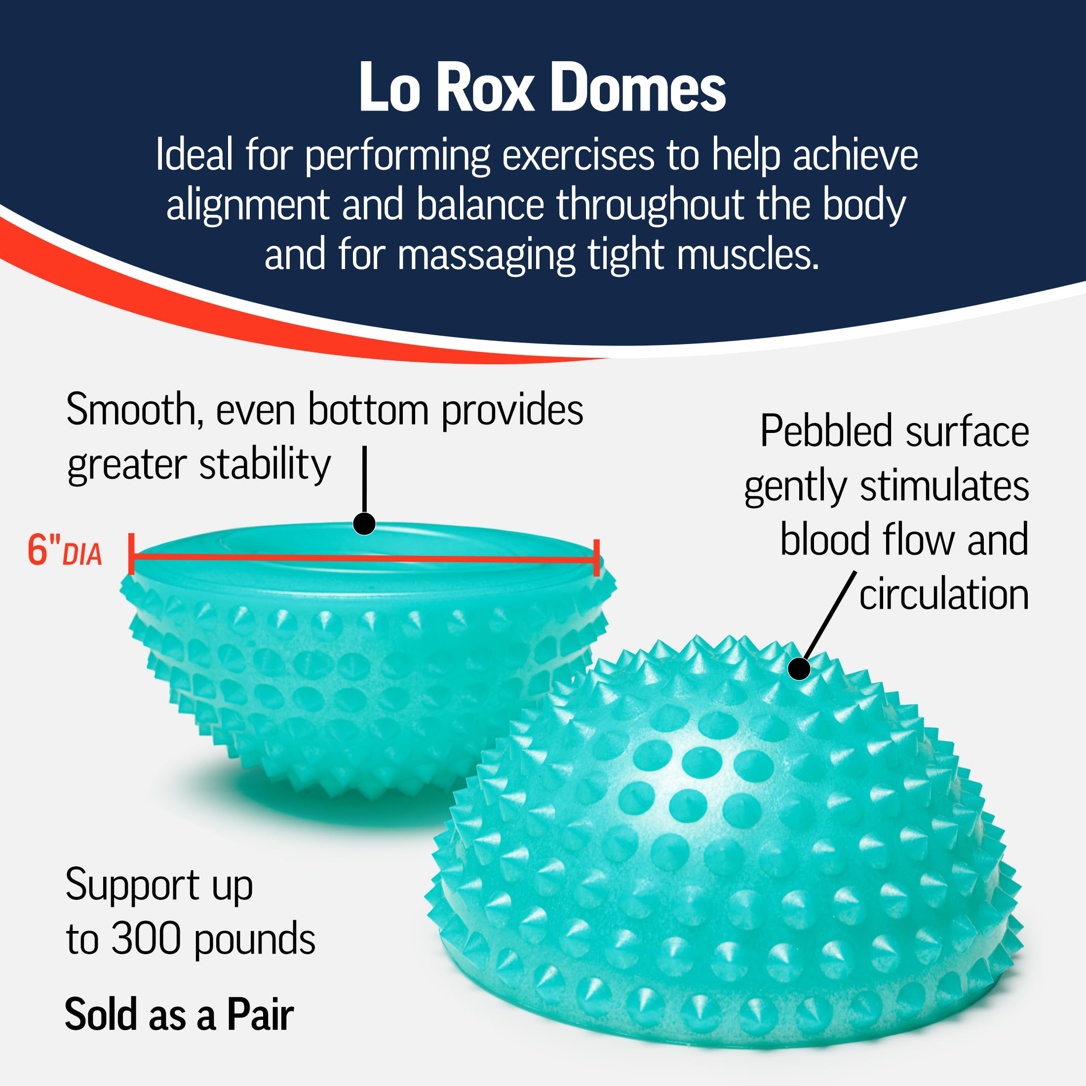 OPTP Lo Rox Domes (Pair) - Textured Balance Pods - Stability and Balance Training Equipment - Sensory and Self-Massage Tools - by Lauren Roxburgh