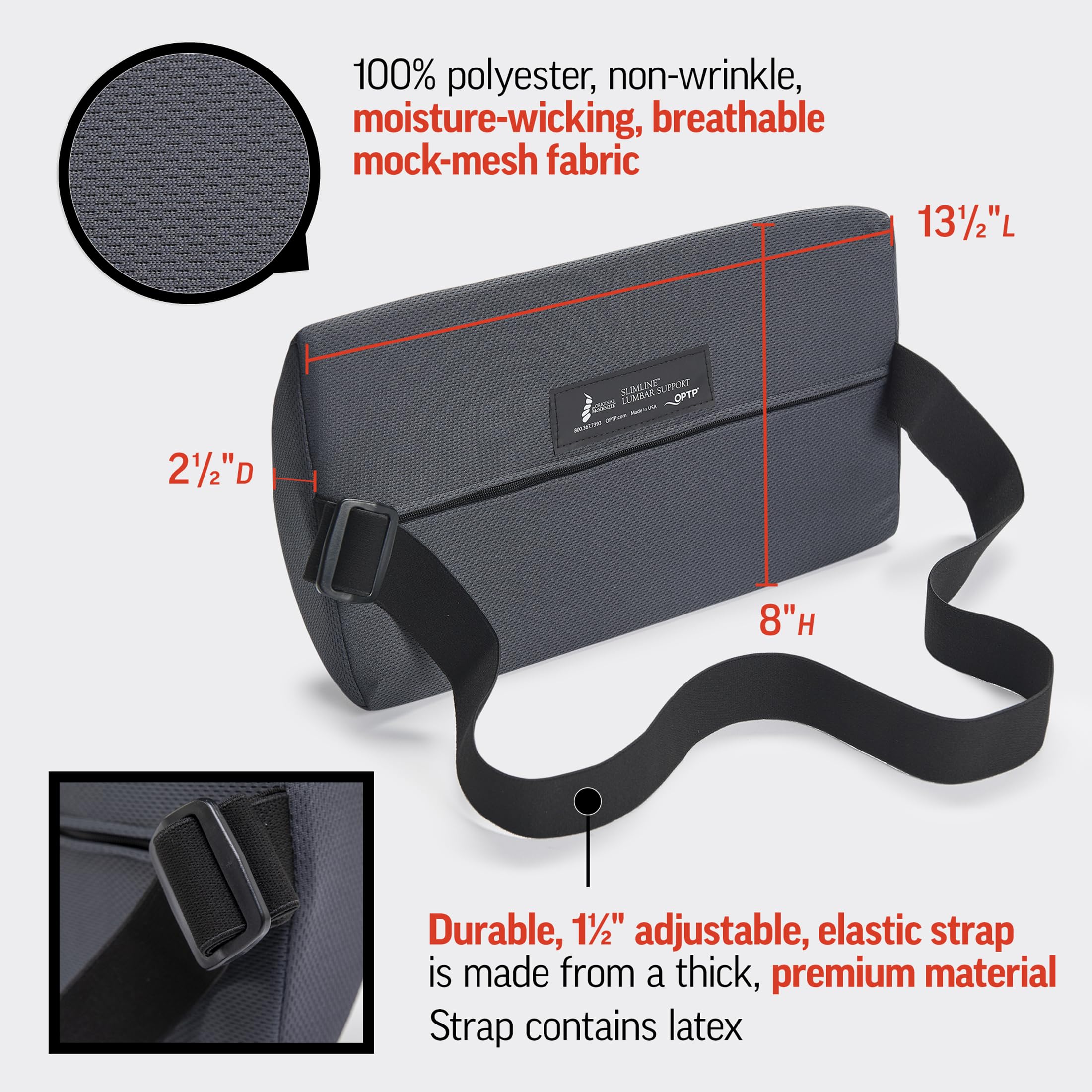 OPTP The Original McKenzie Slimline Lumbar Support – USA-Made Lower Back Support for Office Chair, Car Back Support, and Travel Lumbar Pillow. The Preferred Lumbar Cushion by Physical Therapists.
